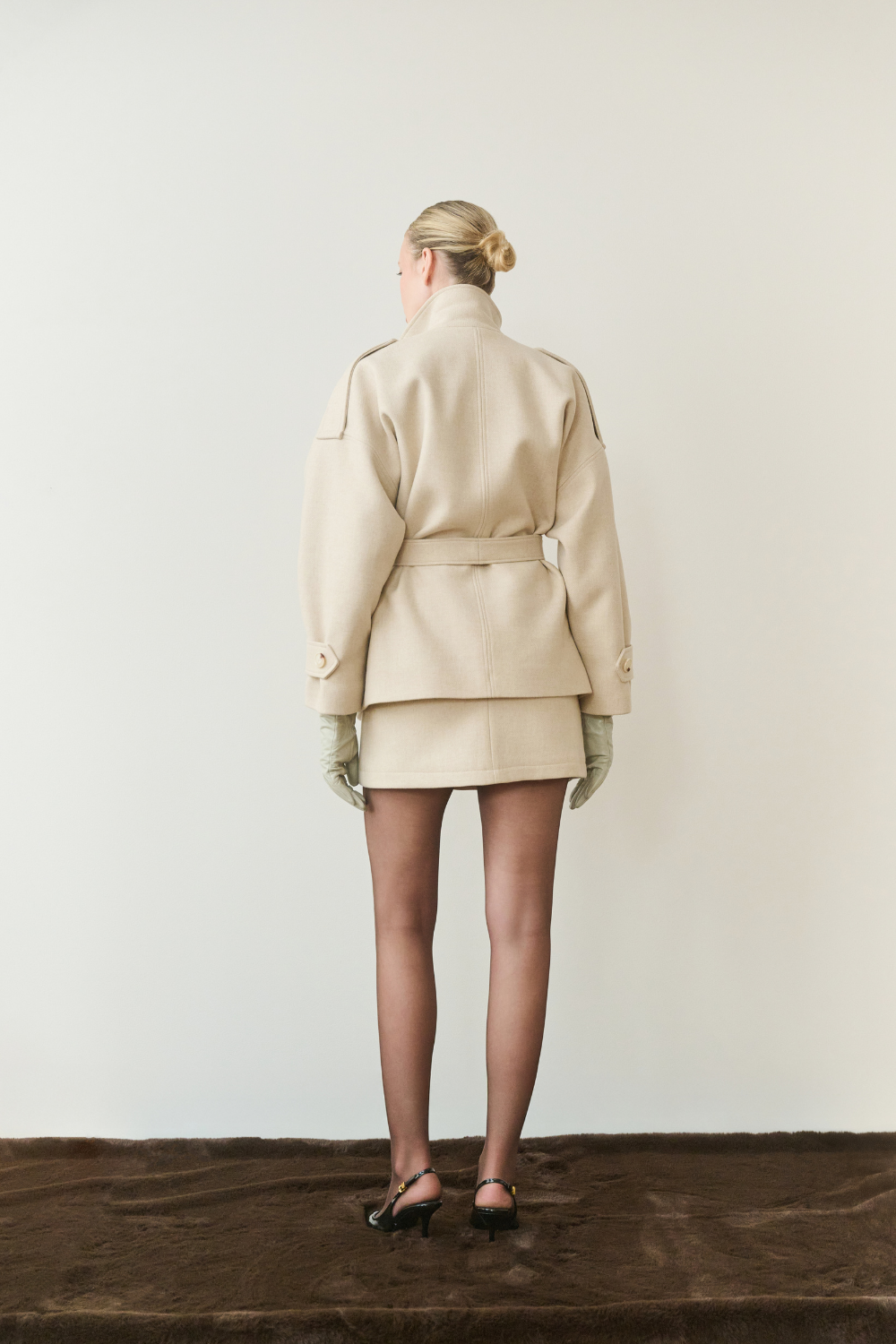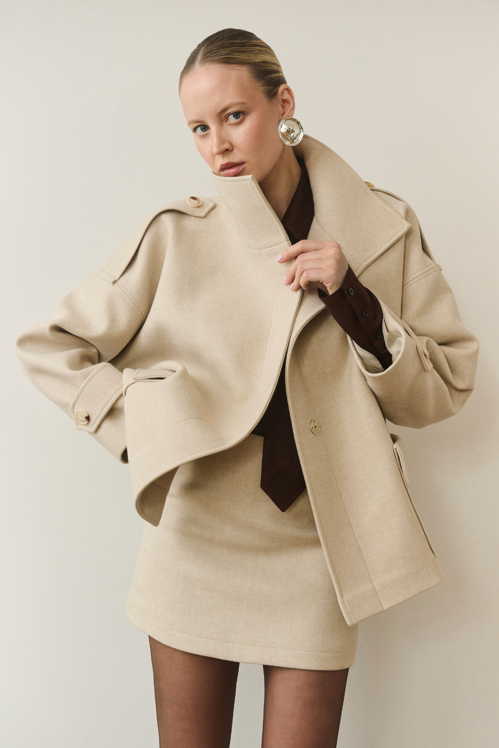 Wyjątkowy, krótki płaszcz wykonany w 100% z najwyższej jakości włoskiej wełny. Lekki, a jednocześnie niezwykle ciepły idealny na chłodniejsze dni.