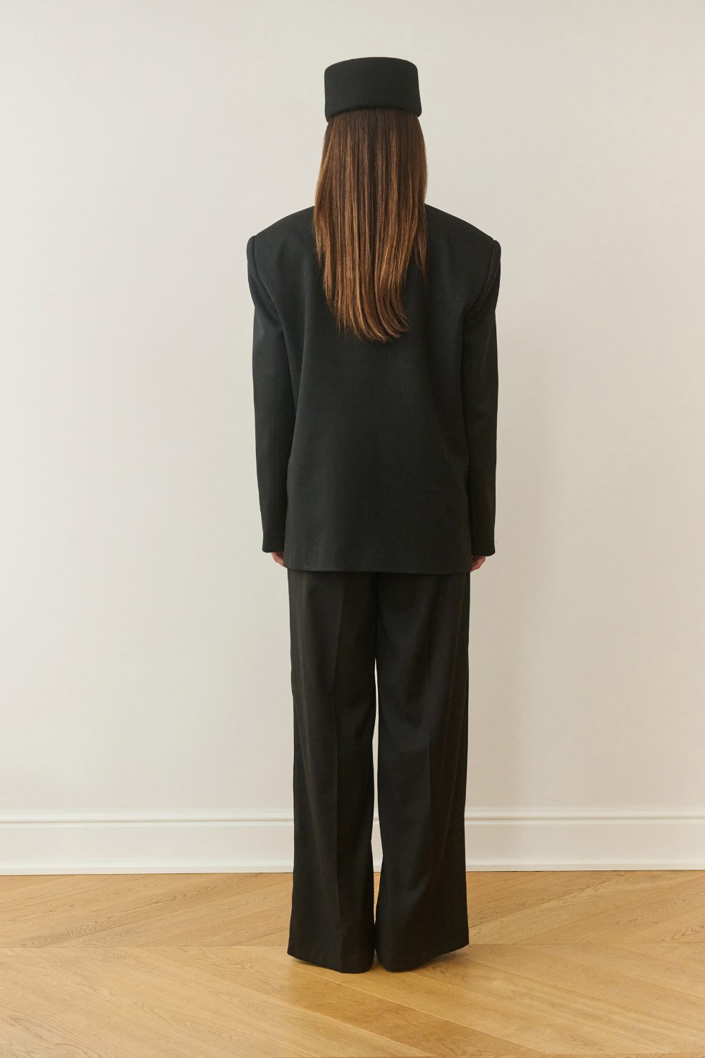 Jej lekko oversize’owy krój i wyraźna linia ramion nadają sylwetce siły i charakteru, zachowując przy tym kobiecy szyk.